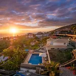 Villa Crossdeira - A Wellness Retreat靠近Igreja do Arco da Calheta,配有俯瞰着大海的露台。